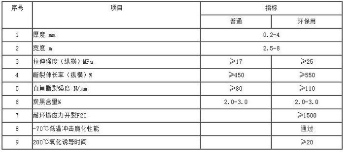 HDPE土工膜技術(shù)指標